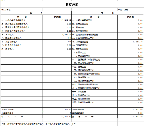 按照综合预算的原则,部门名称所有收入和支出均纳入部门预算管理。收入包括:一般公共预算拨款收入;支出包括:卫生健康支出。2023年度收支总预算21317.40万元。