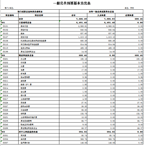 2023年度一般公共预算基本支出7686.49万元,其中: