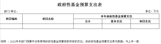 2023年本部门预算中没有使用政府性基金预算拨款安排的支出,故无此项预算,与上年对比无增减变化,与上年预算持平。