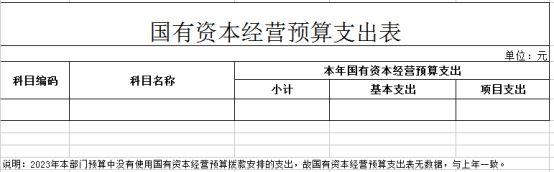 2023年本部门预算中没有使用国有资本经营预算拨款安排的支出,故无此项预算,与上年对比无增减变化,与上年预算持平。