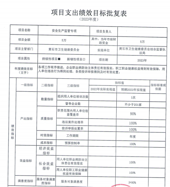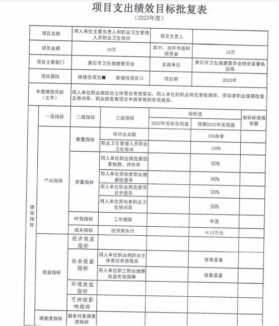十二、2023年项目支出绩效目标批复表