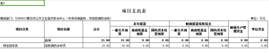 项目包括:1结核病防治专项项目。预算经费33万元,与上年预算持平。主要用于全市结核病人的发现、诊断、报告、登记、治疗和管理。