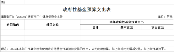 2024年度黄石市卫生健康委本级部门预算公开情况说明