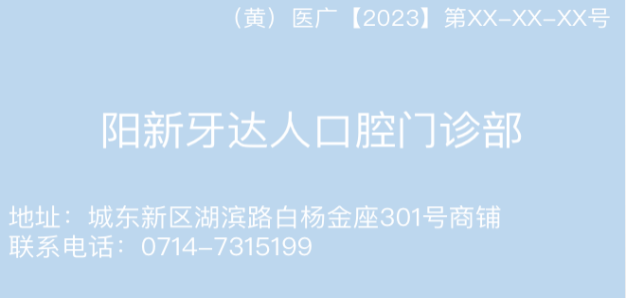 阳新牙达人口腔门诊部向我委审请医疗广告审查审批,按照《医疗广告管理办法》的有关规定,现将有关内容公示如下: