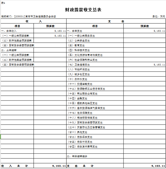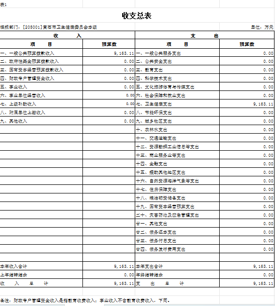按照综合预算的原则,市卫健委机关所有收入和支出均纳入部门预算管理。收入包括:一般公共预算拨款收入;支出包括:卫生健康支出;2025年度收支总预算9163.11万元。
