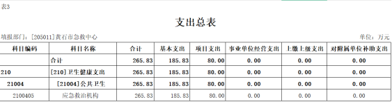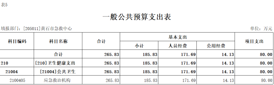 2026年度一般公共预算支出265.83万元,与上年预算相比,一般公共预算支出减少17.87万元,下降6%。主要原因:一是黄石市急救中心在编制预算期间在编人员对比上年减少1人;二是厉行节约、缩减项目经费10万元。