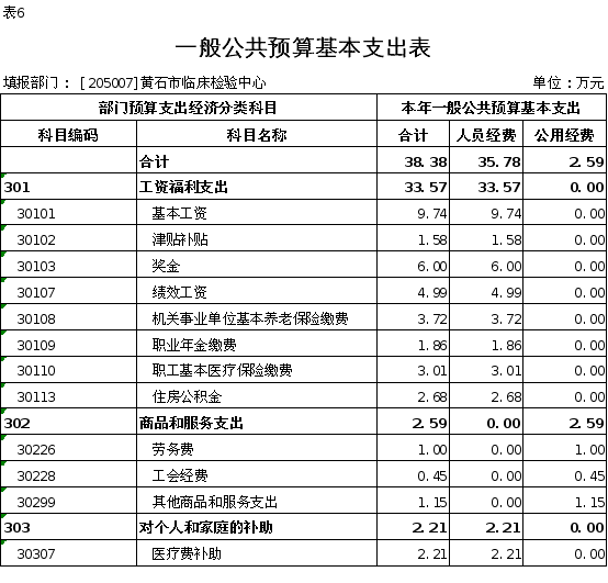 按照综合预算的原则,黄石市临床检验中心所有收入和支出均纳入部门预算管理。收入包括:一般公共预算拨款收入48.38万元、政府性基金预算拨款收入、国有资本经营预算拨款收入、财政专户管理资金收入、事业收入、事业单位经营收入、上级补助收入、附属单位上缴收入、其他收入;支出包括:一般公共服务支出、公共安全支出、教育支出、科学技术支出、文化旅游体育与传媒支出、社会保障和就业支出、卫生健康支出48.38万元、节能环保支出、城乡社区支出、农林水支出、交通运输支出、资源勘探工业信息等支出、商业服务业等支出、金融支出、援助其他地区支出、自然资源海洋气象等支出、住房保障支出、粮油物资储备支出、国有资本经营预算支出、灾害防治及应急管理支出、其他支出、债务还本支出、债务付息支出、债务发行费用支出;2026年度收支总预算 48.38万元。