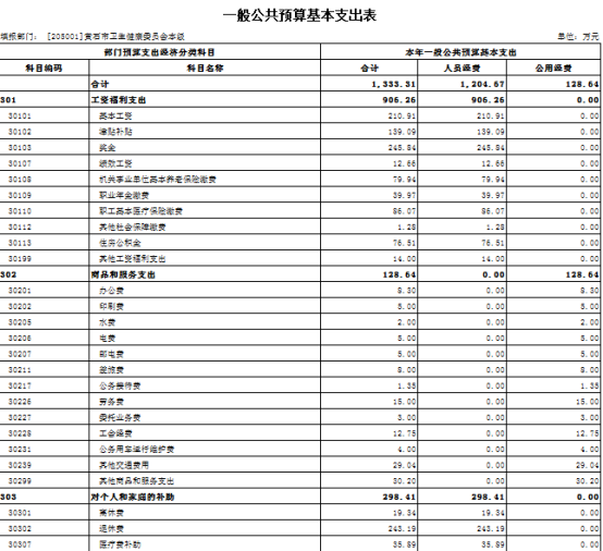 2026年度一般公共预算基本支出1333.31 万元,其中: