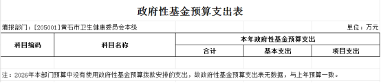 2026年度黄石市卫生健康委员会本级部门预算公开情况说明