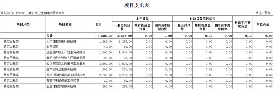 8、黄石市干部保健工作经费项目。预算经费 30 万元,比上年预算增加 0 万元,增长 0 %。主要用于市级重点保健对象的健康体检及诊疗服务等支出。
