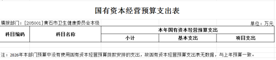 2026年本部门预算中没有使用国有资本经营预算拨款安排的支出,故无此项预算,与上年对比无增减变化,与上年预算持平。
