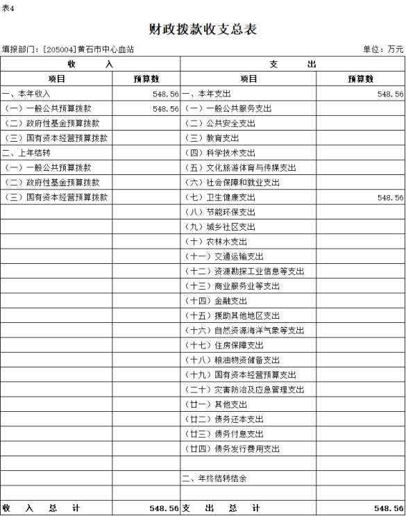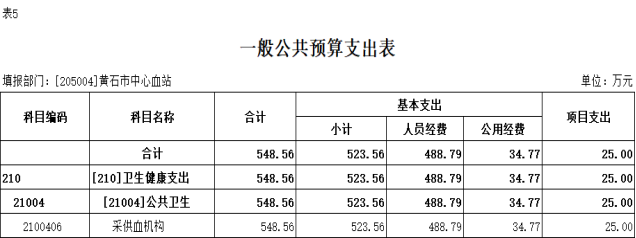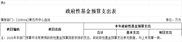 2026年度黄石市中心血站部门预算公开情况说明