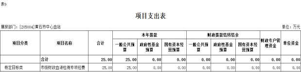 1、市级财政血液检测专项经费。