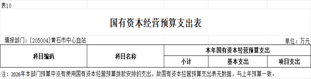 (2)2026年本单位预算中没有使用国有资本经营预算拨款安排的支出,故国有资本经营预算支出表无数据,与上年一致。